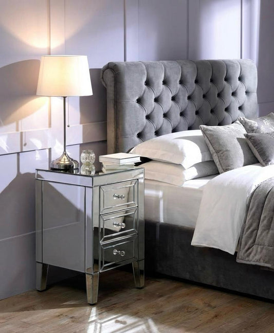 Luxury Plain Mirror Finish 3-Drawer Bedside Cabinet Night stand